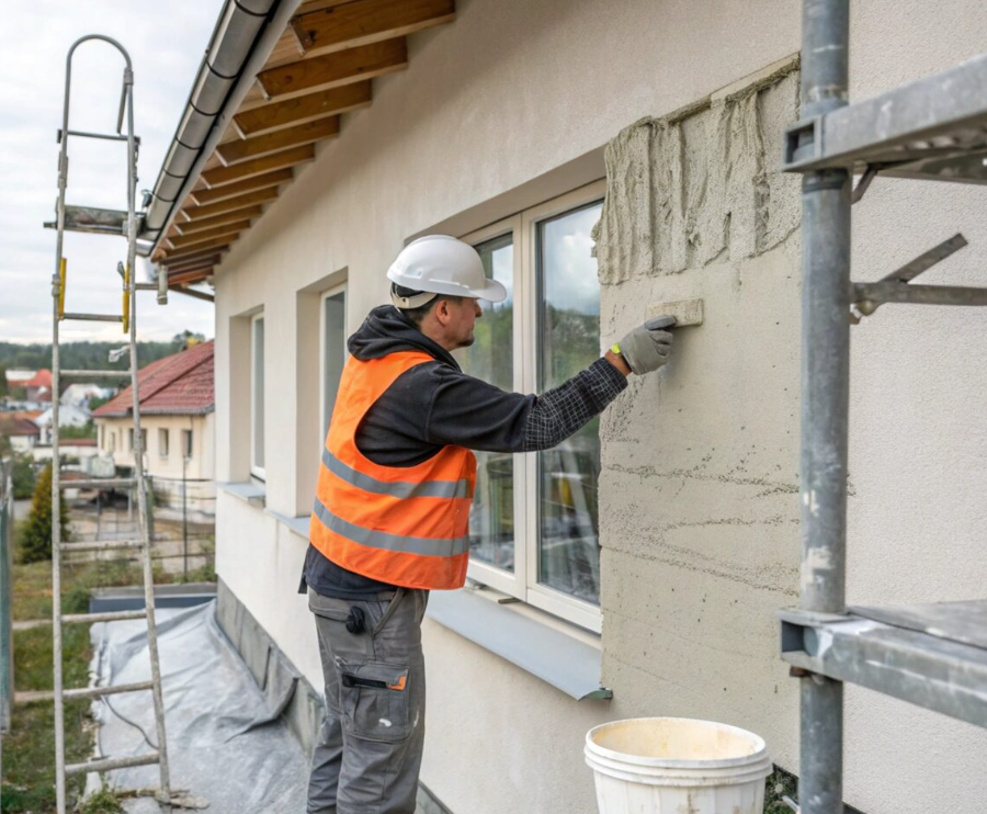 Монтаж и отделка фасадов с использованием штукатурки (в том числе декоративной штукатурки типа "короед")