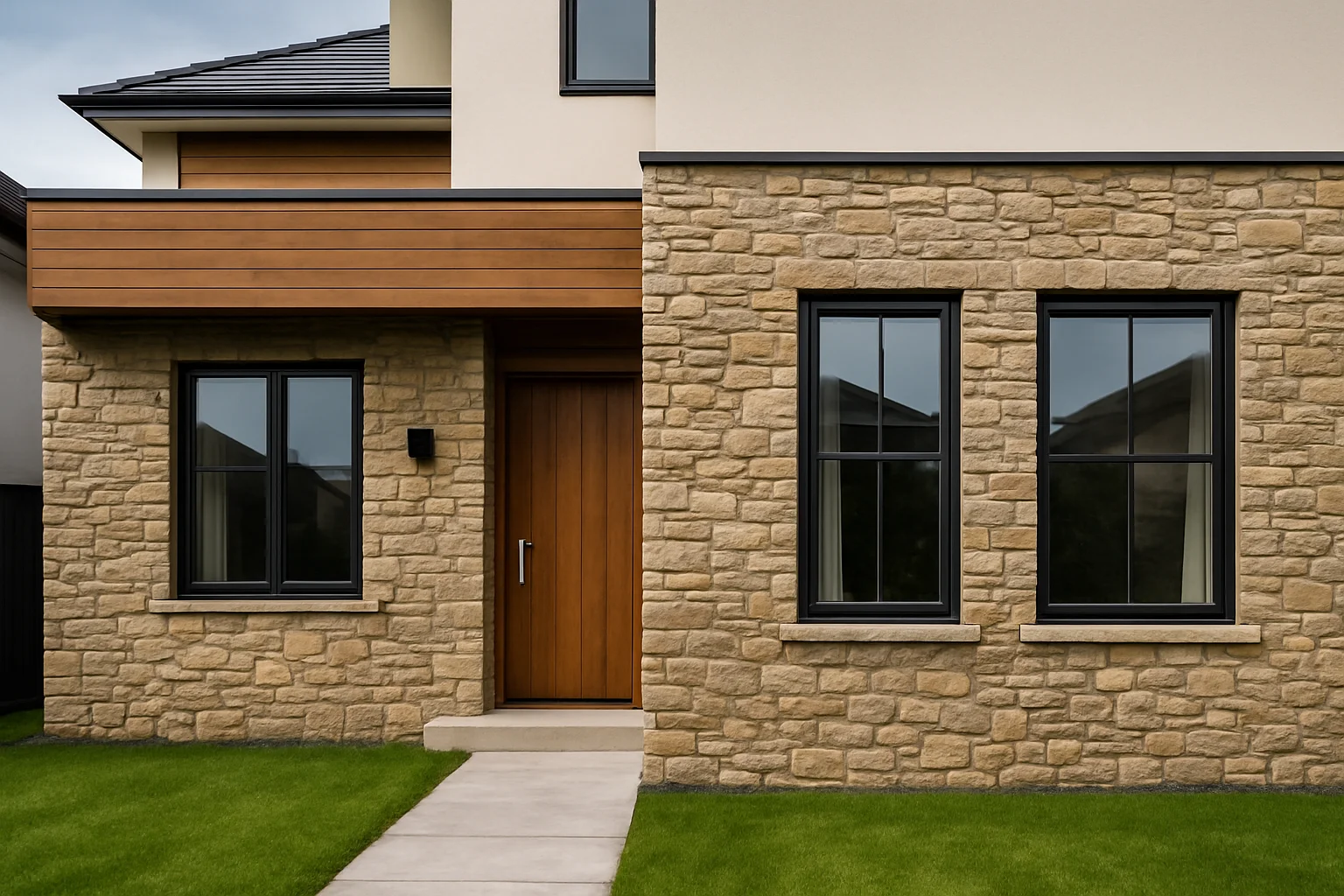 Укладка декоративных камней и плитки (песчаник, кирпич, керамогранит)